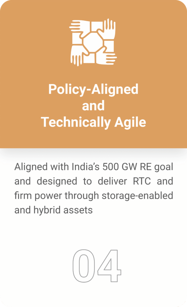 Aligned with India’s 500 GW RE goal and designed to deliver RTC and firm power through storage-enabled and hybrid assets