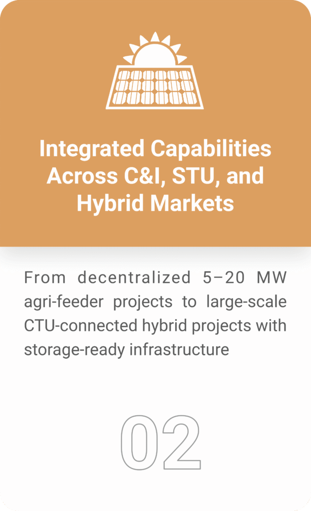 One of the few developers offering customized solutions for both rural (DISCOM/agriculture) and industrial (C&I) clients